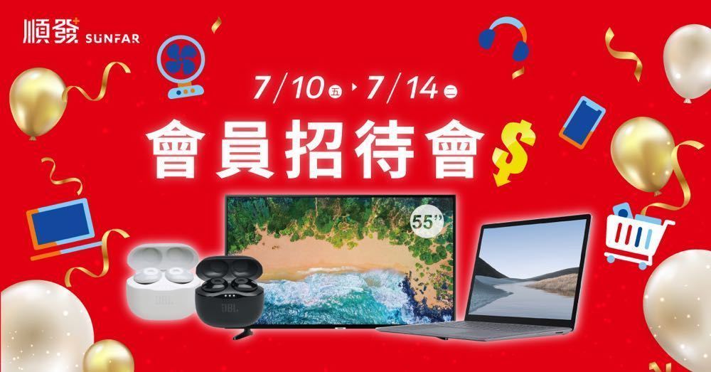 順發振興優惠,歡樂開跑。因應疫情趨緩,「振興三倍券」措施上路,順發推出多款振興優惠商品,開放提前使用振興券預購。本次會員招待會於 7 月 10 日起限時 5 天,全館超過千款熱門商品,最高可享六倍好康優惠,振興幸福超有感,順發力邀會員一起歡樂購。