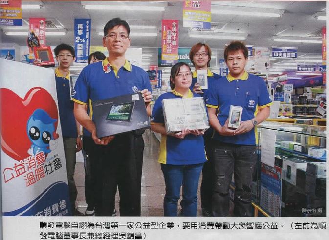 入圍本屆CSR創意方案競賽「公益推動組」的「順發電腦」,提出了一個前所未有的「公益型企業」概念,要號召大眾用消費行為行善,讓企業透過日常營運盡到社會責任。