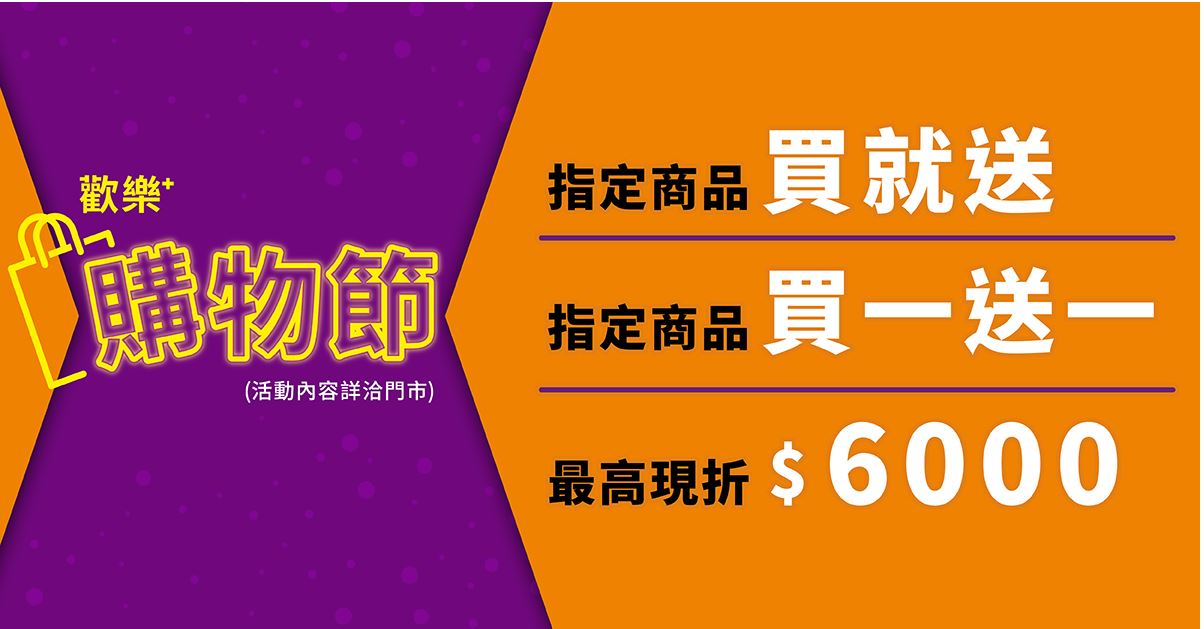 歡樂+ 購物節指定商品 買一送一or買A送B最高現折6000!